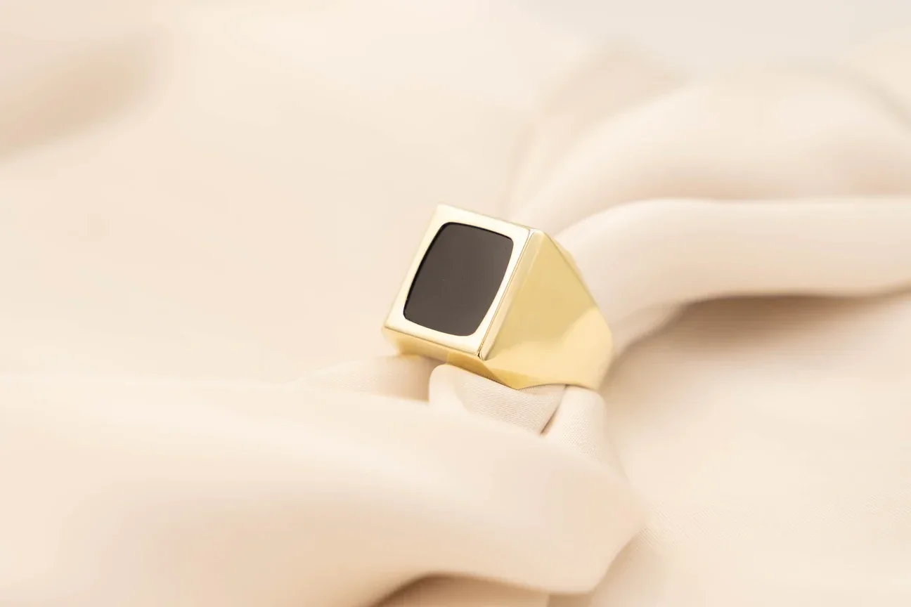 14 Karaat Geelgouden Zegelring met Onyx – Kracht, Focus en Karakter