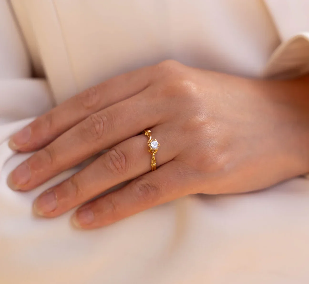 Unieke 18 karaat gouden solitair ring met briljant – verfijnde elegantie in een kunstzinnig ontwerp