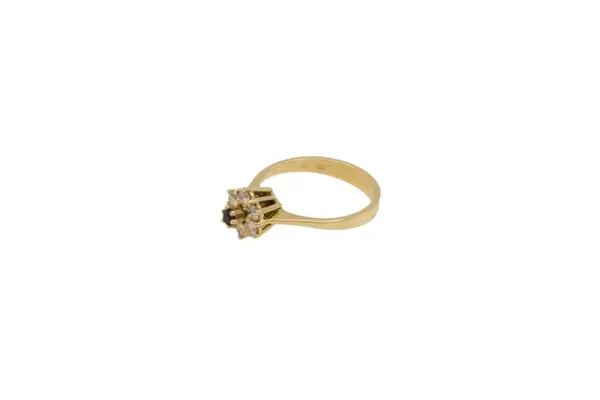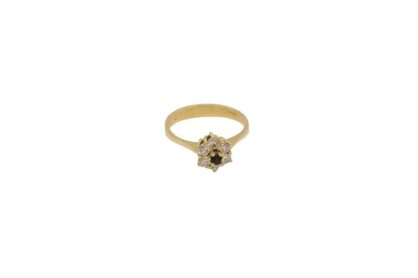 Geelgouden Rozetring met Blauwe Saffier en Briljant – Tijdloze Elegantie
