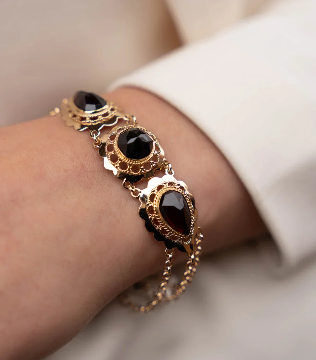 Prachtige antieke armband met granaat – tijdloze elegantie in 14 karaat goud