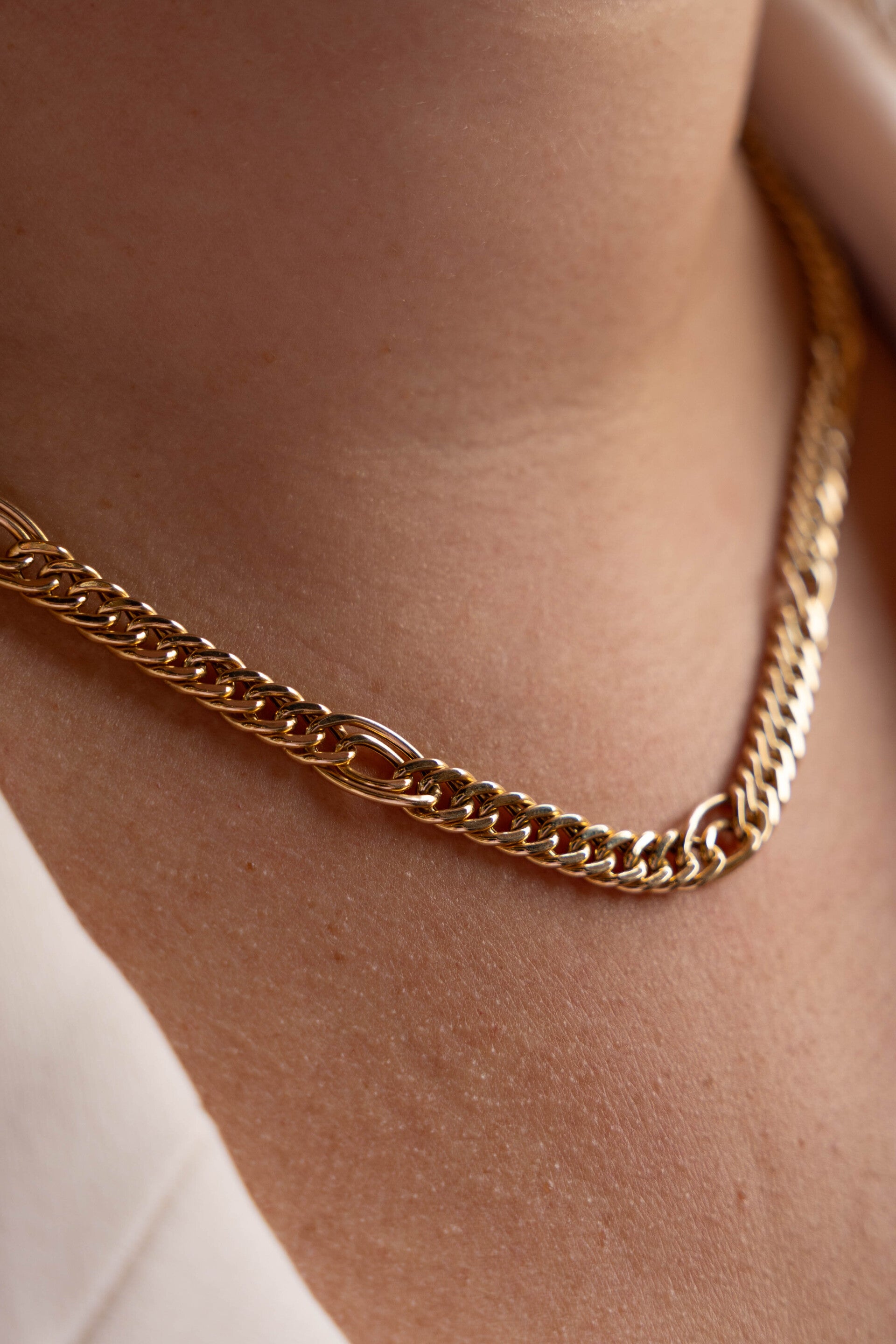Deze elegante 14 karaat gouden ketting is een subtiel, maar stijlvol sieraad dat perfect te dragen is bij elke gelegenheid. De klassieke gourmet schakel krijgt een moderne twist door de afwisselend grotere en kleinere schakels, wat de ketting een speels en verfijnd karakter geeft.